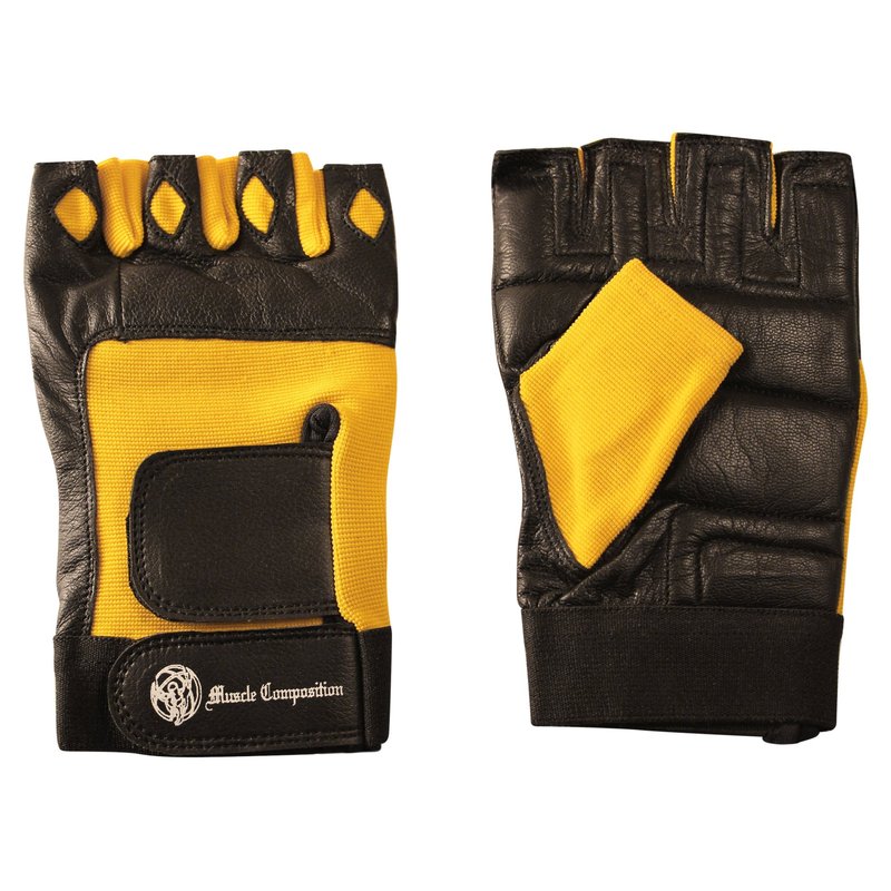 Muscle Composition weight lifting gloves are made with high quality goat leather,featuring padded palms and fingers for extra comfort and protection. This Muscle Composition fitness gym gloves showcase a wrist closure for extra support, perfect fit design and the easy-on and off system.