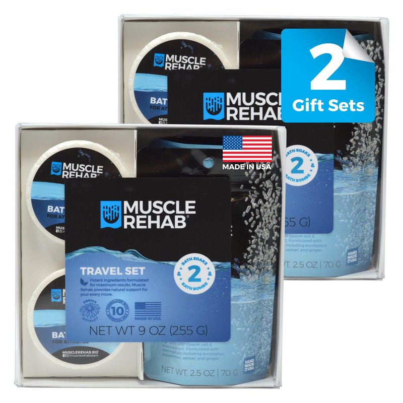 Muscle Rehab Sports Recovery Intro Gift Set (2) Sets- Fast-Absorbing Muscle Soak for Post-Workout or Run - Bath Bombs and Soak for Sore Muscles - Foot or Hand Soak Bombs - Soothe Joints, Pain Relief