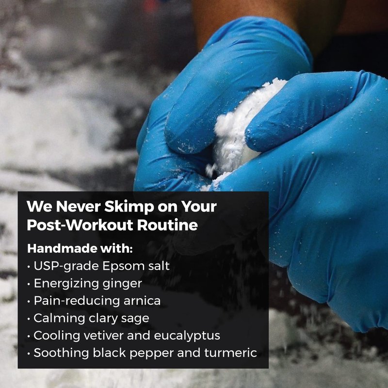 - Dynamic Recovery: Say goodbye to joint aches, soreness, and post-workout fatigue with our specialized Bath Bombs. Crafted with precision, these bath bombs are formulated to combat muscle tension, lactic acid buildup, and fatigue. Our secret ingredients include arnica, Eucalyptus, and Epsom salts, offering you a dynamic recovery experience like never before.