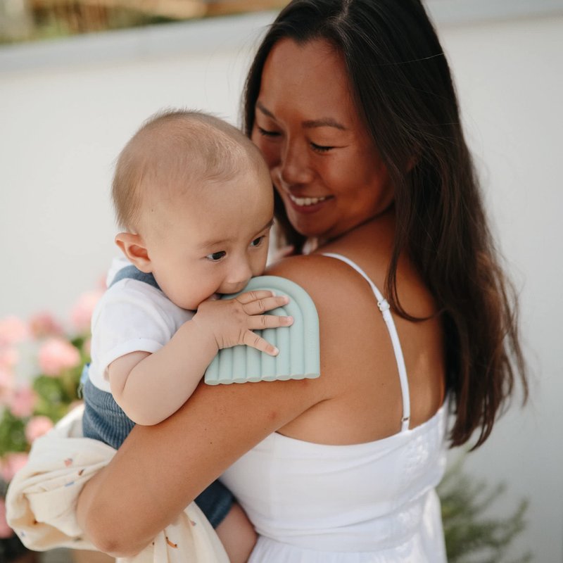 - Help soothe your baby's irritated gums with our line of silicone teethers. Made from 100% non-toxic, food-grade silicone, they're safe for your baby to use—and their whimsical design and sophisticated colors make them a stylish addition to your home.