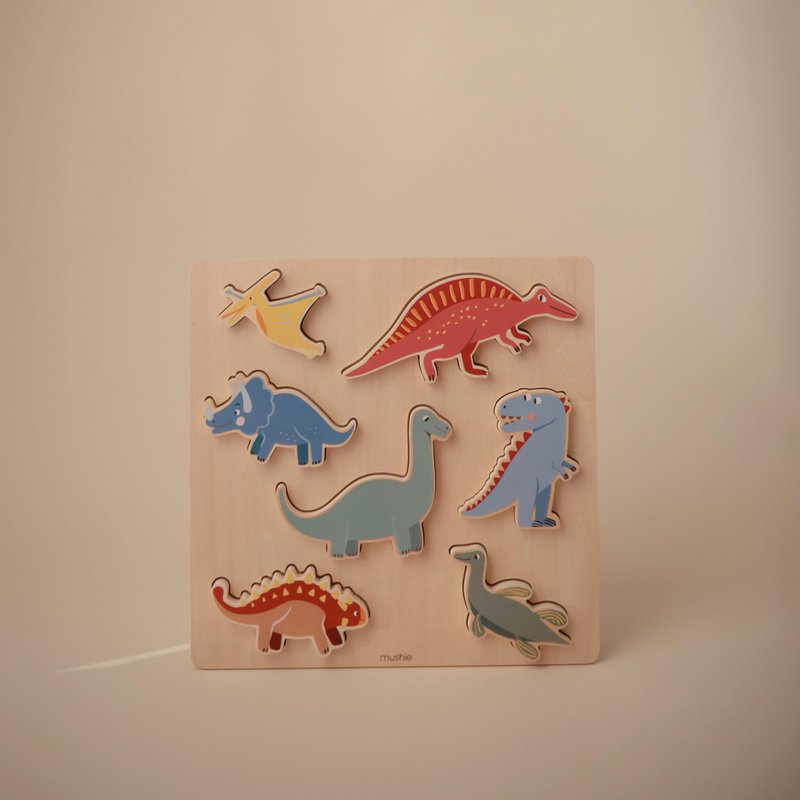 mushie Wooden Dino Puzzle | for Kids 3 Years+ | Preschool Educational & Toddler Montessori Toys (7 pcs)