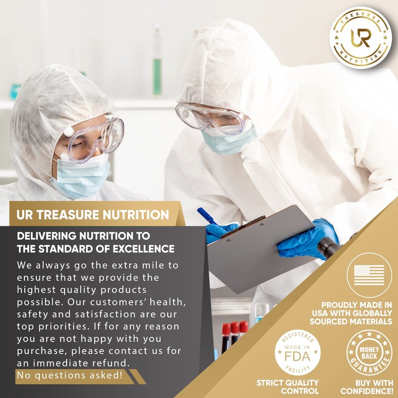 - BUY WITH CONFIDENCE - All of UR Treasure Nutrition supplements undergo strict quality control and tested by the 3rd party laboratory. We proudly manufacture in the USA at a GMP Certified facility always using the highest quality ingredients. Our team is working hard to ensure highest potency and purity of our products to help you reach your personal wellness goals. If you are not completely satisfied with your purchase, we will immediately provide a full refund