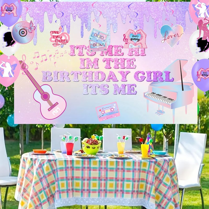 Music Birthday Party Decorations - Singer Happy Birthday Banner, 'ITS ME' Backdrop, Cake, Cupcake Toppers, Hanging Swilrs, Balloons for Fans Music Theme Party Supplies
