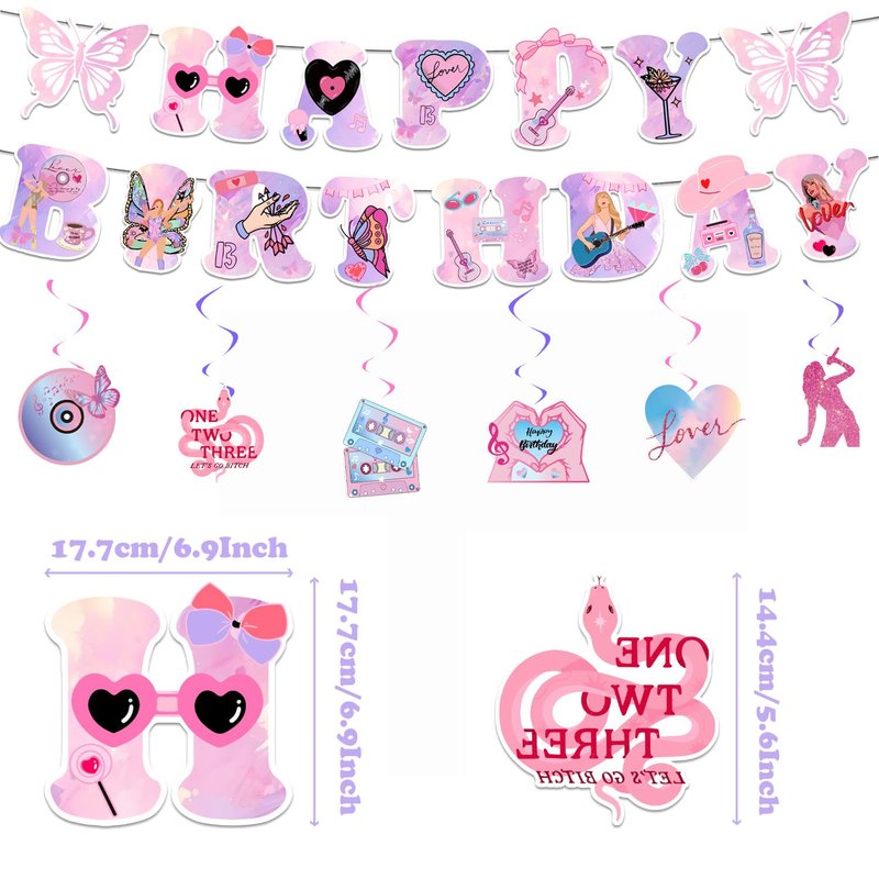 - Nice Combination: you will receive a package including 1 piece of happy birthday banner, 1 piece happy birthday Backdrop, 6 pieces of hanging swirls, 6 pieces of hanging cards, 18 pieces balloons, 12 pieces cupcake toppers, 1 piece cake topper, a novel combination, give you a beautiful party experience.