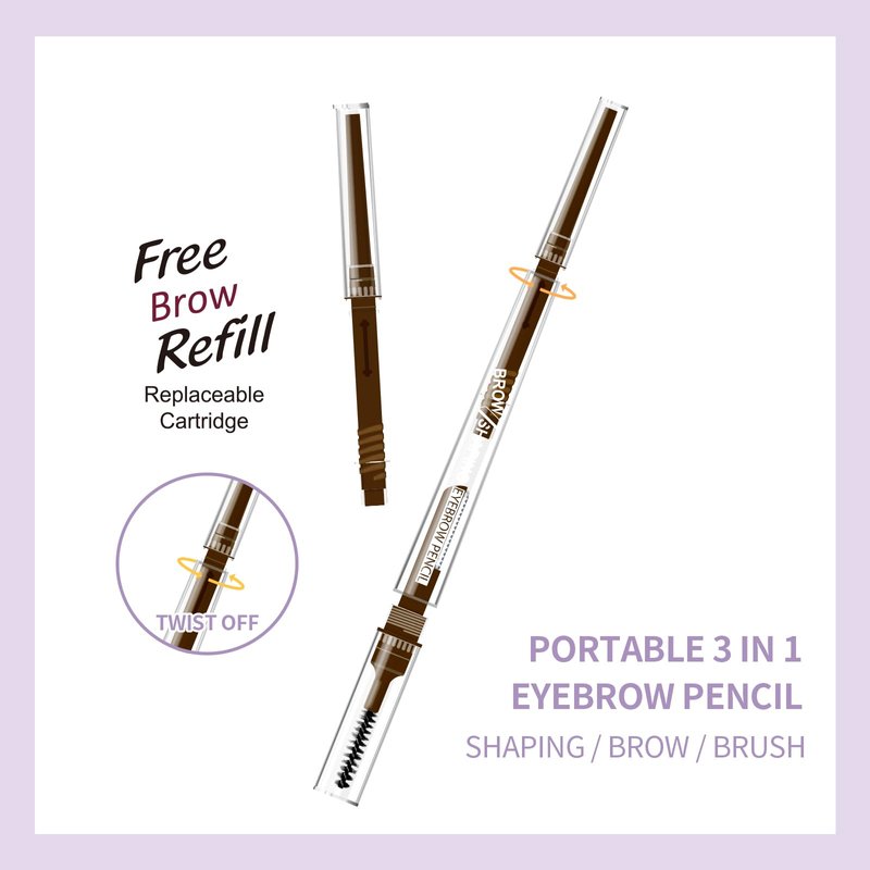Music Flower 3 in 1 Eyebrow Pencil Shaping filling Enhancing Kit with Brow Trimmer & Brow Brush + Replaceable Brow Refills
