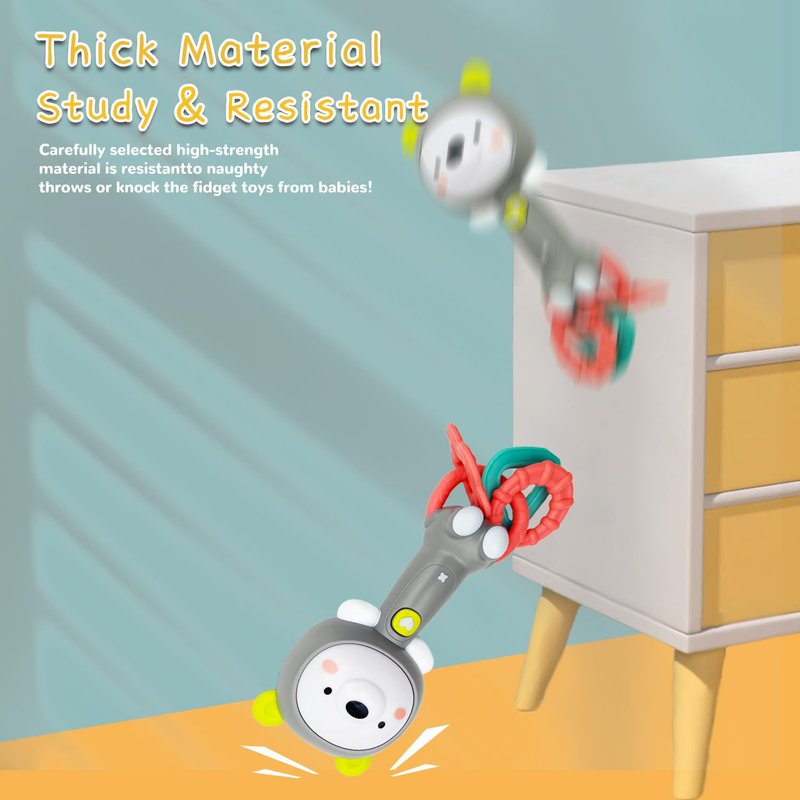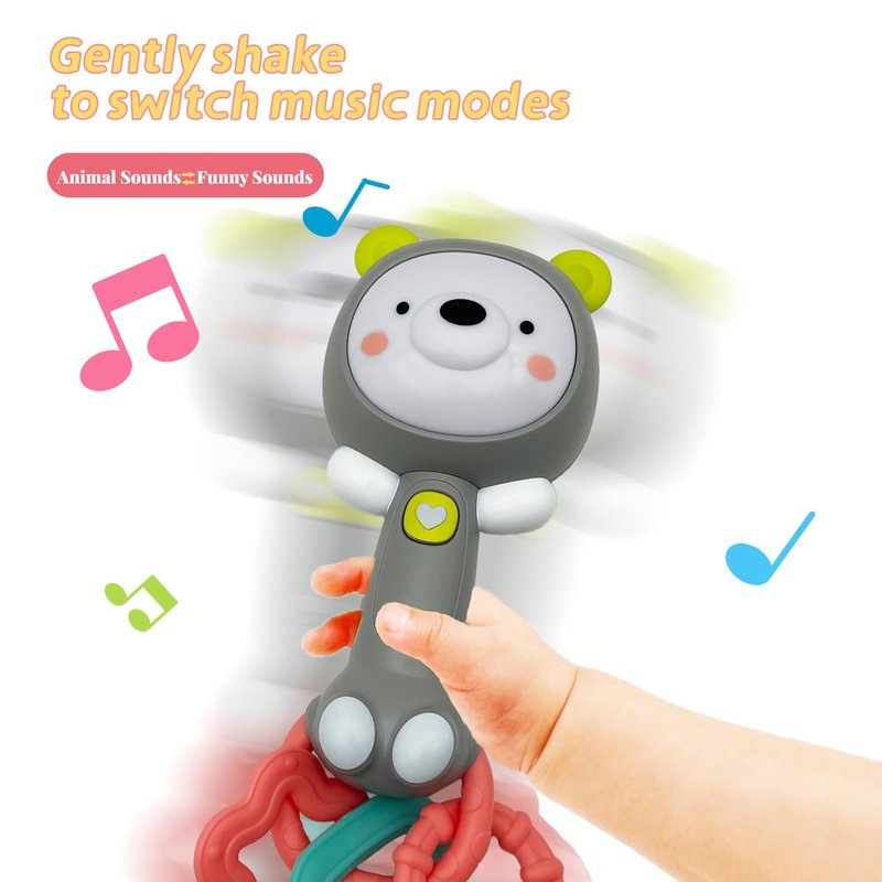 Musical Rabbit Light-Up Toy and Teething Ring for Toddlers Sensory Chew and Fine Motor Skills Toy Baby Rattle and Teething Toys for 6 12 18 Month Babies (Grizzlies)