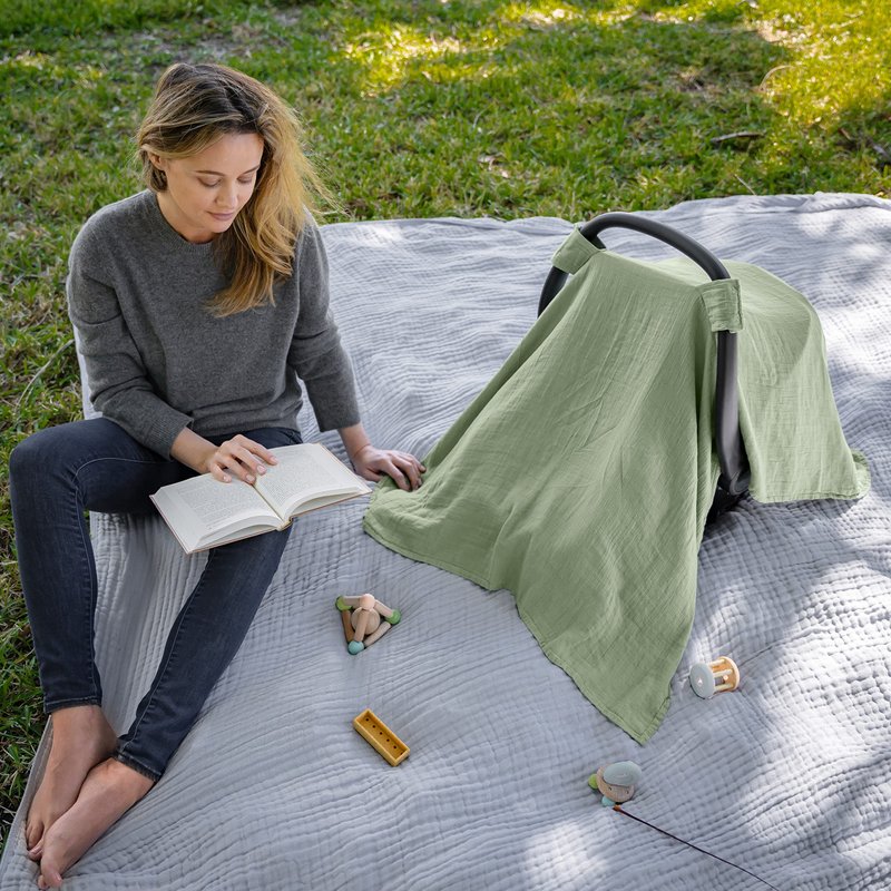 Muslin Cotton Baby Car Seat Cover, Universal Fit Carseat Canopy Covers for Babies, Girls and Boys by Comfy Cubs (Sage)
