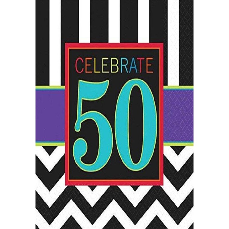 Must-Have Chevron and Stripes 50th Birthday Party Beverage Napkins Tableware, Pack of 16, Multi , 5"x5" Paper