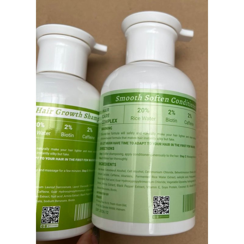 Muun Rice Water Shampoo and Conditioner Set for Hair Growth, Regrowth, Thinning Hair and Anti Hair Loss, Fall with Natural Ingredients including Biotin, Keratin and Caffeine, Men and Women.