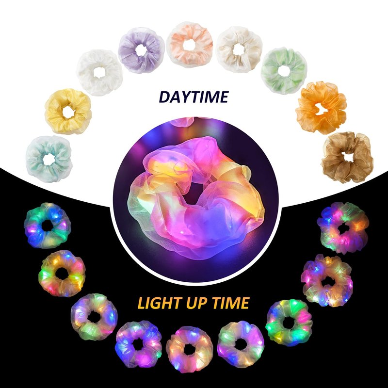 - Girls Gift Glow Party? Look no further than MUYANN's light up scrunchies! Whether you're looking for hair ties for thick hair or hair scrunchies for women's hair, our glow in the dark hair accessories make a great party favor for any occasion.