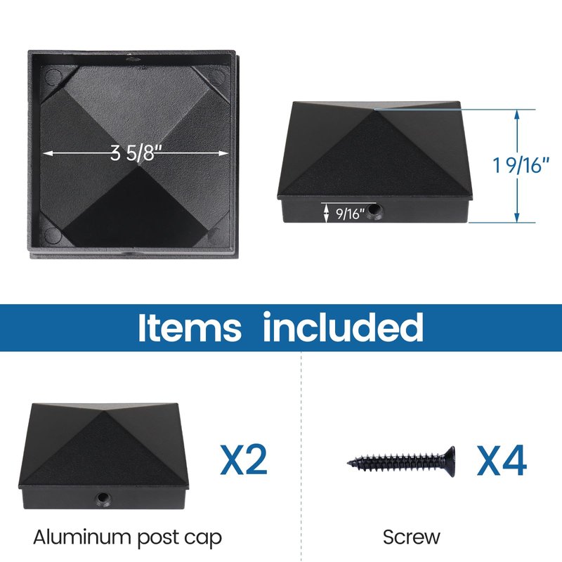 - Weather protection - This black powder-coated post cap is made of quality aluminum with great rust resistance and will work for a long lifetime. The black powder coat allows it to work on the seaside as well