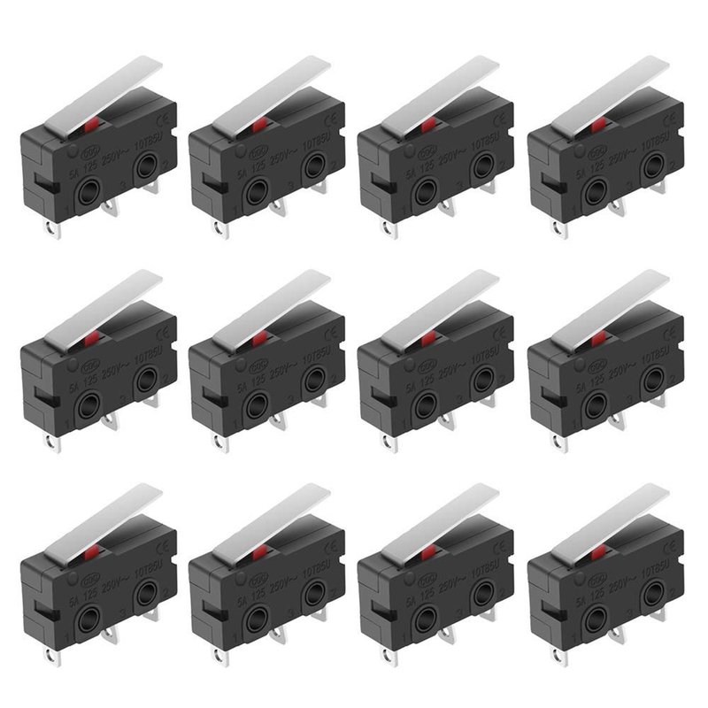 MUZHI SPDT 1NO 1NC Hinge Lever Momentary Push Button Micro Limit Switch AC 5A 125V 250V 3 Pins 12 Pcs