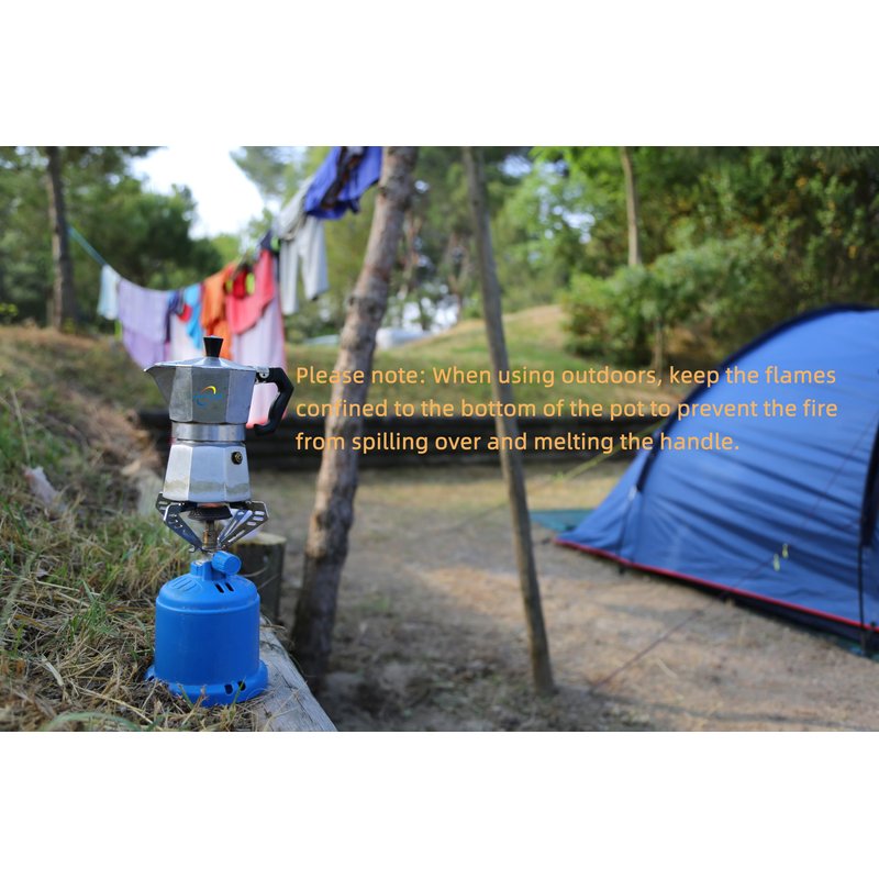 - Perfect Design:Use safety, is our first consideration.Durable copper safety valve.Lighter,under the premise of ensuring quality, we reduced the weight of the moka pot, making it easier to carry and use.Italian design appearance.Rich Italian espresso moka in under 5 minutes.Aluminum body for fast heating,octagon shape for even heat diffusion,stay-cool handle knob and lid.The most classic style,handmade.A genuine American English manual, making it effortless for you to master moka pot!