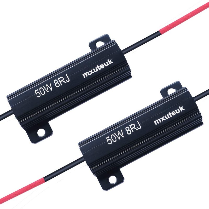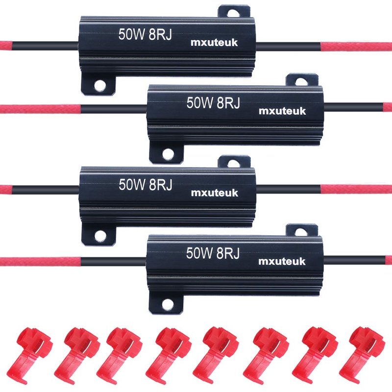 mxuteuk 4pcs Led Resistor Car Load Resistors 50W 8ohm for Fix LED Bulb Fast Hyper Flash LED Turn Signal Lights, Fix Error Flash Controller, with 8pcs Quick wire Clip 50W-8RJ-4