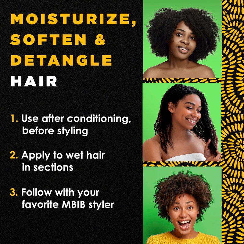 - FOR BEST RESULTS - Section damp hair & apply a generous amount of MBIB Cream to your palms. Emulsify & gently massage into hair. Finger detangle & distribute evenly throughout hair. Follow with a wide-tooth comb & MBIB styling products