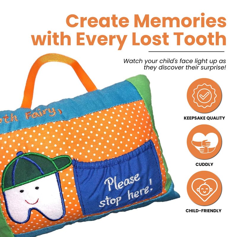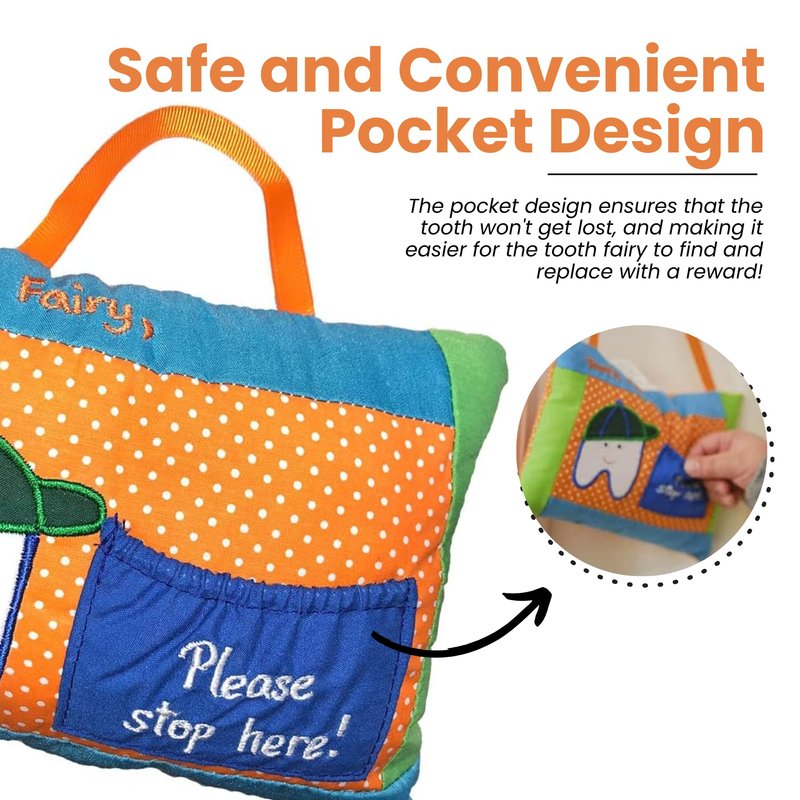 - CONVENIENT POCKET DESIGN. The pillow is designed with a handy pocket that provides a safe and secure place for children to keep their lost tooth until the Tooth Fairy arrives, adding excitement and anticipation to the tooth-losing experience. The Tooth Fairy can leave leave a reward for the tooth right in the pocket.