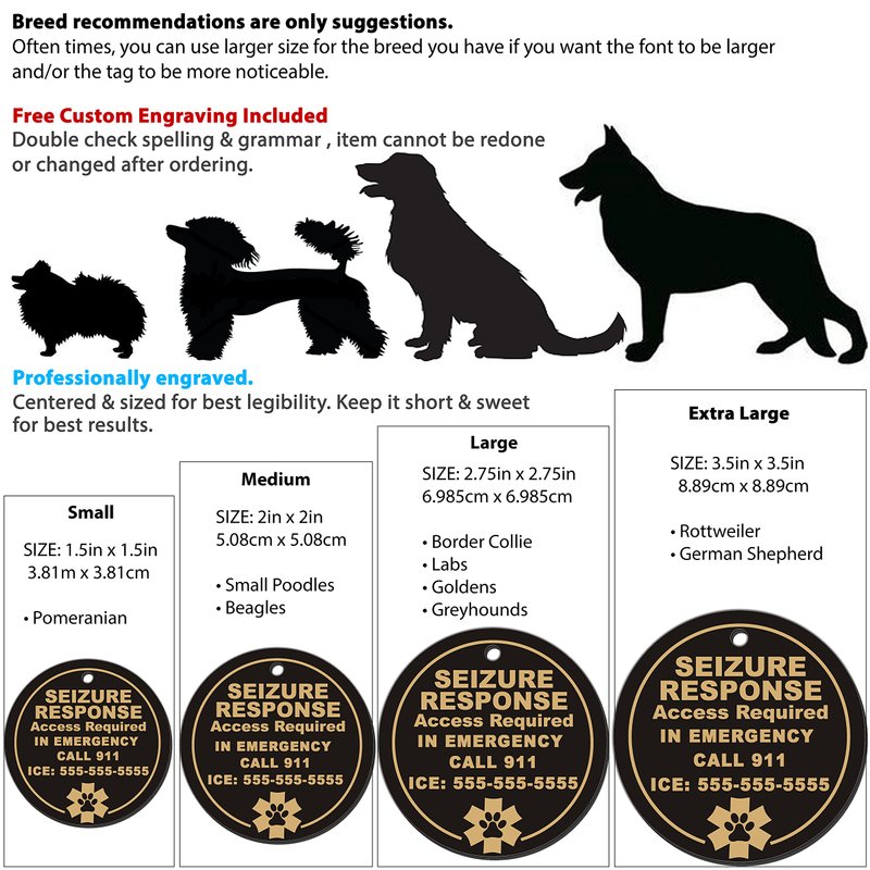 - ENGRAVING: Pre-engraved with “Seizure Response Access Required” and Custom Engraving