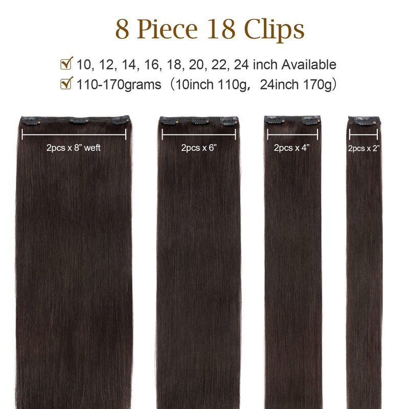 MY-LADY 10 inch Double Weft 100% Remy Human Hair Clip in Extensions Grade 7A Quality Full Head Thick Short Soft Silky Straight 8pcs 18clips for Women Beauty 110g #2 Dark Brown