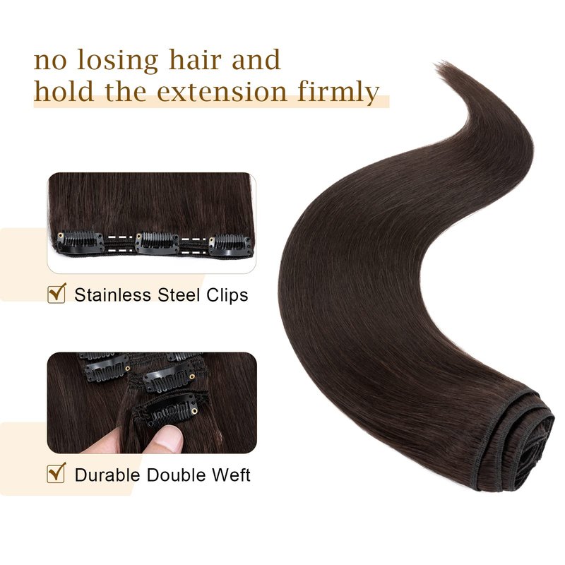 - Double wefted (two wefts sewed together) - more hair than typical extensions and don't fall out easily,shedding free. One pack is enough to full head for thin or fine type of hair