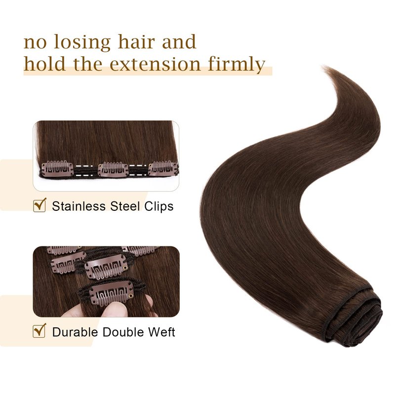 - 100% REAL HUMAN HAIR - natural soft remy human hair extension clip ins. Can be dyed, washed, bleached, curled and straightened(temperature better below 356℉/180℃ for a short time)