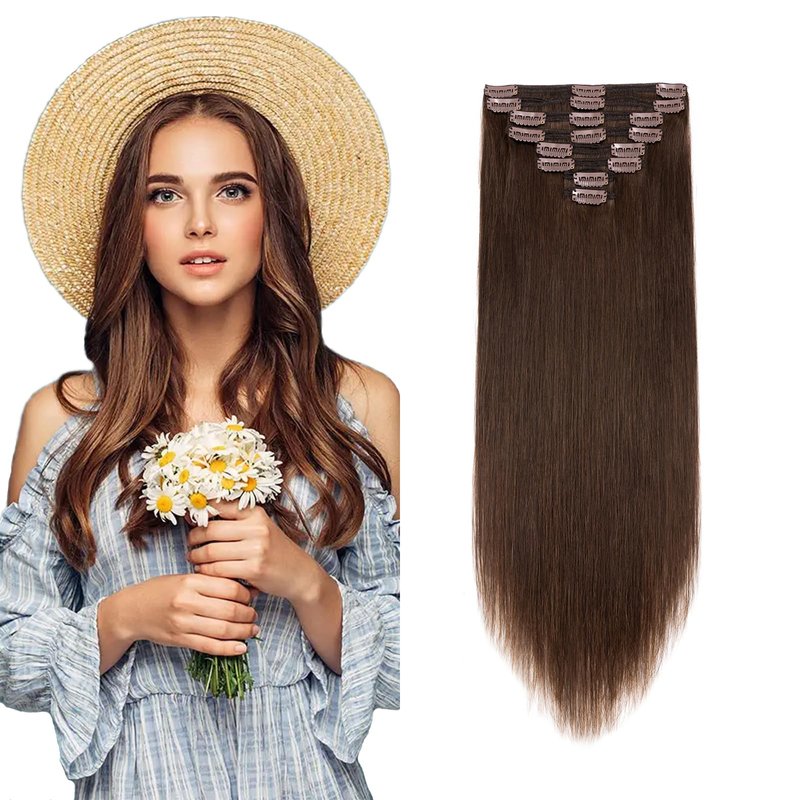 MY-LADY 140g Double Weft Clip in 100% Remy Human Hair Extensions #4 Medium Brown Grade 7A Quality Full Head Thick Thickened Long Soft Silky Straight 8pcs 18clips for Women Fashion 18" / 18 inch