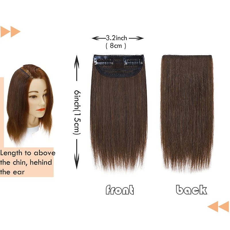 MY-LADY 2PCS Invisible Clip in Mini Hair Extensions for Short Hair Wiglets Hairpieces for Thinning Hair 6 Inch Medium Brown Short Extension Hair Clips Real Hair
