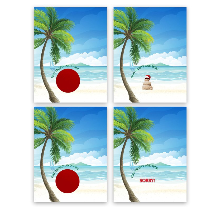 - UNIQUE SANTA ON THE BEACH DESIGN: Enjoy the holiday spirit with our unique Christmas in July scratch off game featuring a delightful Santa enjoying the beach. Scratch off the surface to reveal a Sand SnowMan and a chance to win!