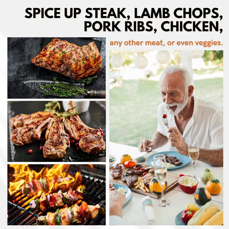 - [ONE SPICE RUB FOR EVERY MEAT] – It doesn't matter if you are grilling steak, lamb chops, pork ribs, chicken, any other meat, or even veggies, this seasoning spice blend is the ideal choice for any dish you want to churn out. Get your chef’s hat on and show off your culinary skills!