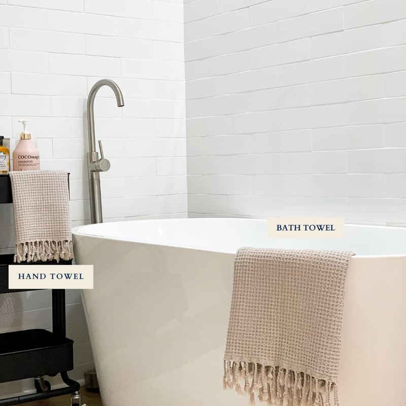 - MATERIAL & SIZE – Size 19 x 40 inches - Carina Waffle Towels are made of 100% Natural Turkish Cotton, traditionally hand-loomed in Turkey. Waffle weave gives great softness, durability, and absorbance to these soft bath towels. They are also eco-friendly. Beautifully crafted cotton hand towels are also especially stonewashed for more softness and vintage look of adorable colors.