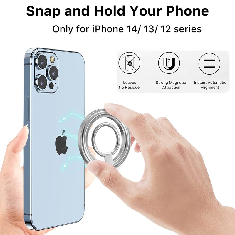 - DESIGNED FOR IPHONE 14/13/12 SERIES: The strong built-in magnets make magsafe grip compatible with iPhone 14/14 Pro/14 Pro Max/14 Plus/13/13 Pro/13 Pro Max/13 Mini/12/12 Pro/12 Pro Max/12 Mini and magsafe cases, Other Exceptions, Can be Used with the Adhesive Metal Ring Piece.