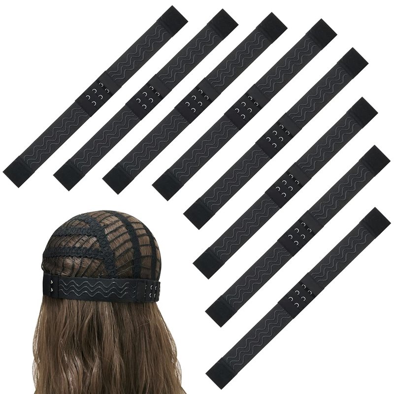MYKURS 8 PCS Adjustable Wig Elastic Bands with hook, Elastic Wig Straps for Making Wigs, Sewing Elastic Bands for Keeping Wigs in Place