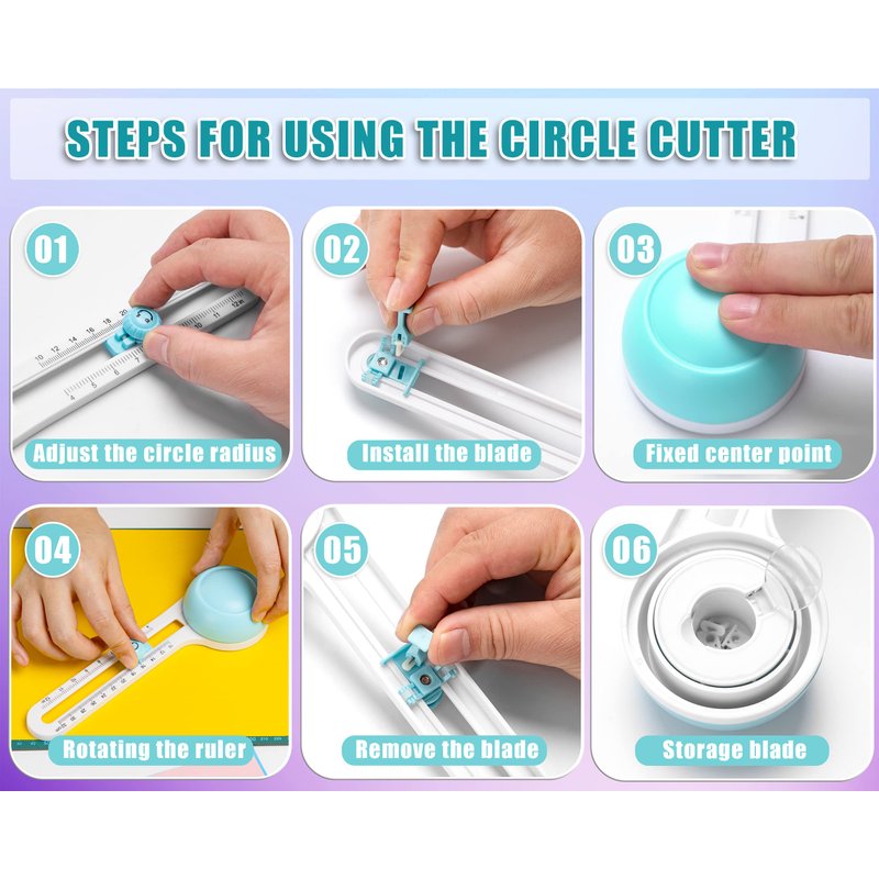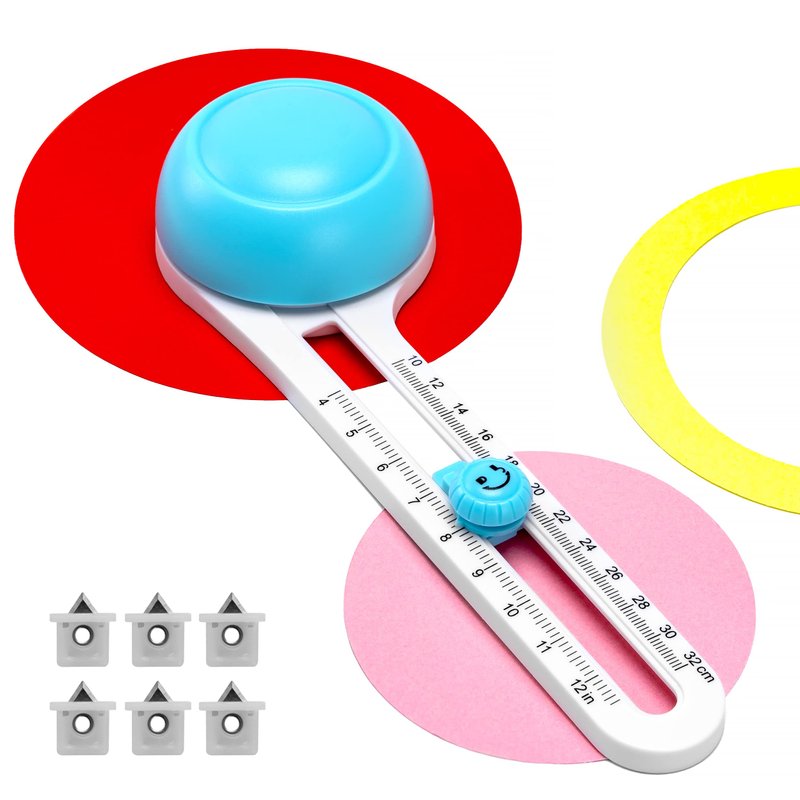- Packaging & Wide Suitability - Package includes 1 piece circle cutter and 6 pieces replacement blades. The circle cutter is perfect for cutting all kinds of paper with thickness below 3MM, such as printing paper, scrapbooking, photo paper, composite paper, craft paper, cardstock, DIY projects, etc.