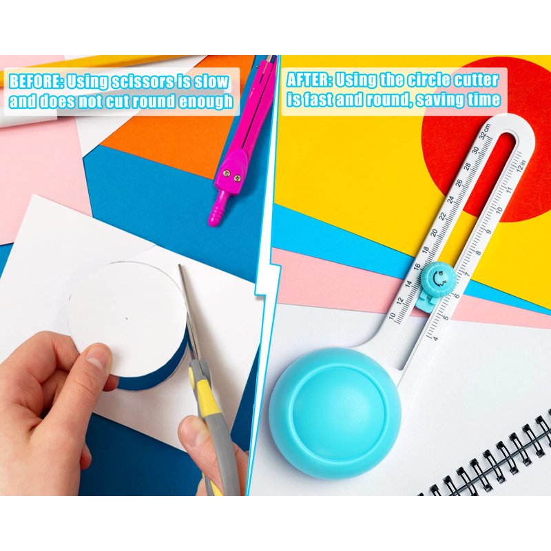 - Easy to Operate & Simple to Use - Circular paper cutter is easy to operate and can be cut smoothly. Just set the size by turning, sliding and locking the knob, and fix it to the position corresponding to the size you want. Then place the cutter on the paper, rotate it, and a perfect circle will be cut. Note: It is recommended to use the circular cutter with a cutting board.