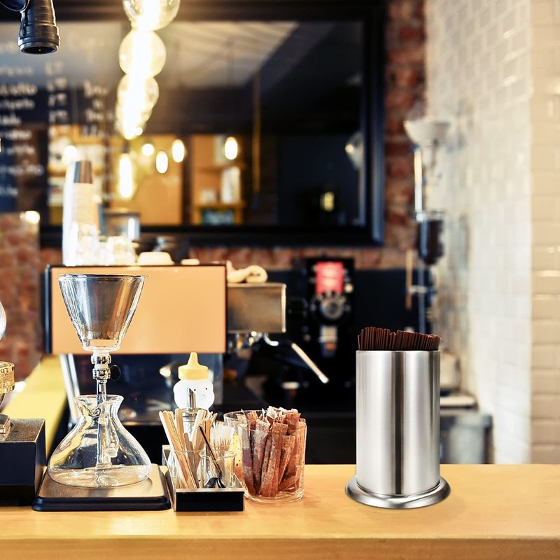 Bundle your straw in a convenient, noticeable, and open location with the counter-top straw dispenser! This stainless steel unit is 6.3" high with 4" diameter, so you can pack lots of straws into a compact area to make the most of your counter space.