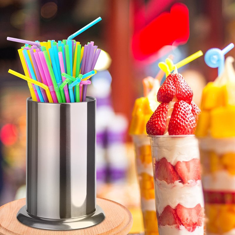 - Multipurpose straw holder can also hold coffee stirrers or cutlery
