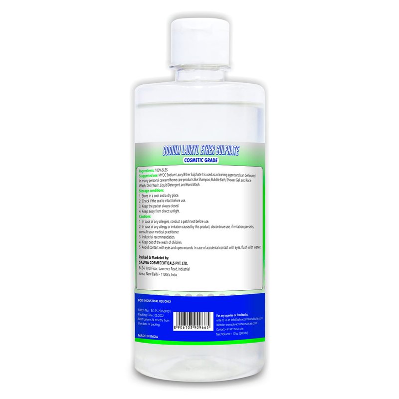 Myoc Sodium Lauryl Ether Sulphate (500ml) |Face, Hair, Hand Wash Products| Cleanser, Foaming Agent, Emulsifier, |Used in Shampoo, Soap, Detergent, Bubble Bath, Shower Gel