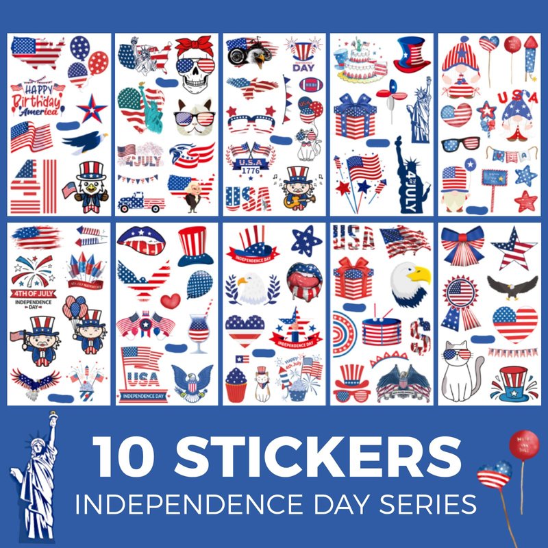 - America Temporary Tattoos for Kid- 100 america tattoos in 10 sheet, easy to carry to every party or gathering and share with your friends. Unique tattoo stickers to make your child more happy at parties and parties!!