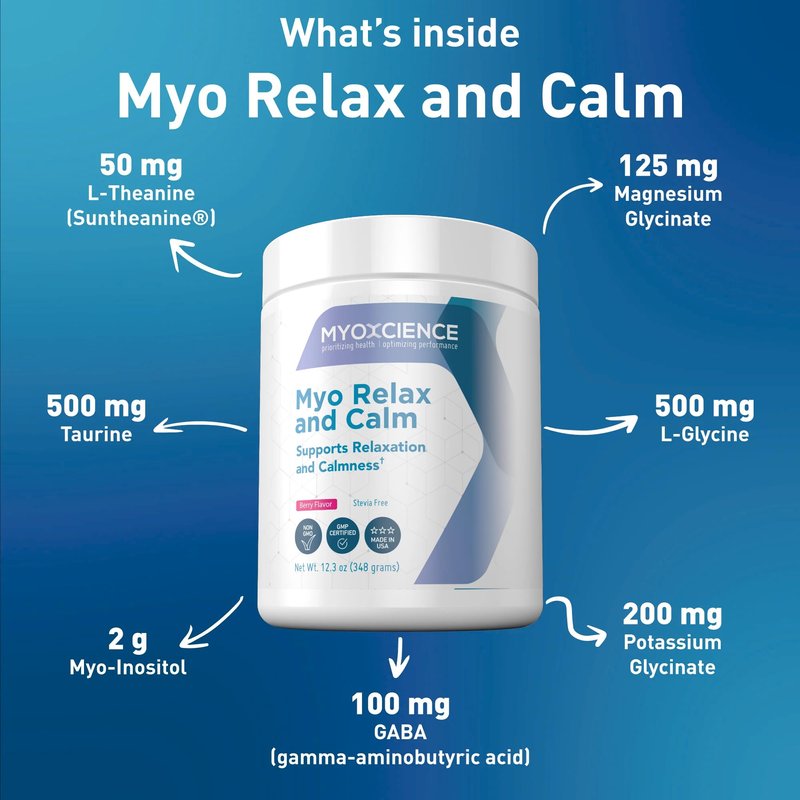 MYOXCIENCE Myo Relax & Calm | Myo-Inositol, L-Theanine, Taurine, Magnesium & GABA | Supports Sleep, Neurotransmitter & Hormone Support (Berry Flavor) (60 Servings)