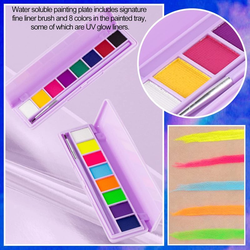 - Bright Water Based Eyeliner:6 cakes can glow in dark under UV light.It is water based,so it is not waterproof.All 16 colors are vivid bright vibrant colors.Applied smoothly and dried fastly.Easy to remove by water.