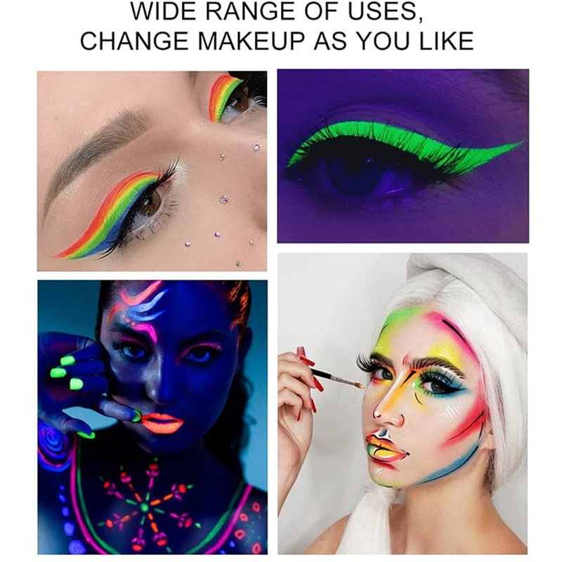 - Safe,Non-toxic and Widely Use:The formula is hypoallergenic, non toxic, safe for face or body painting on all skin types.It is not only for eyes,but for face and body paint too.Suitable for many accosions,such as fancy ball, parties, Halloween,Christmas, New Year, Birthday, Club, Events, etc