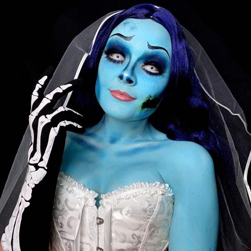- Bright and Last Long:Highly pigment and stays long.Our face body paints are fantastic for creating highlights, low lights, or gradients between different colors.You also have the capability to build or layer the colors without cracking.Great for Sally Corpse Bride costume for festivals,halloween,party,christmas.