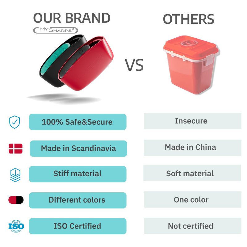 - MySharps - The Original high-quality Sharps Container recommended by the Danish Diabetes Association and certified according to ISO 23907