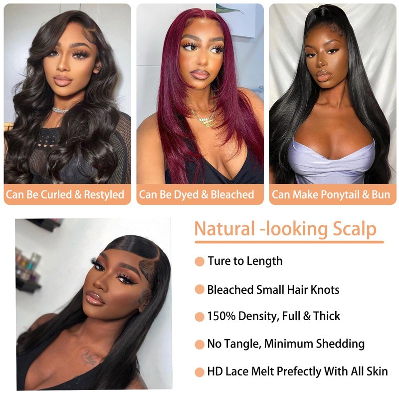 - Straight Wig Human Hair Advantage:13x4 Straight Lace Front Wigs Human Hair, Bleached Knots, Pre-Plucked With Natural Hairline,More Comfortable To Touch, No Odour, No Split Ends, Can Be Styled, Restyled As You Own Hair