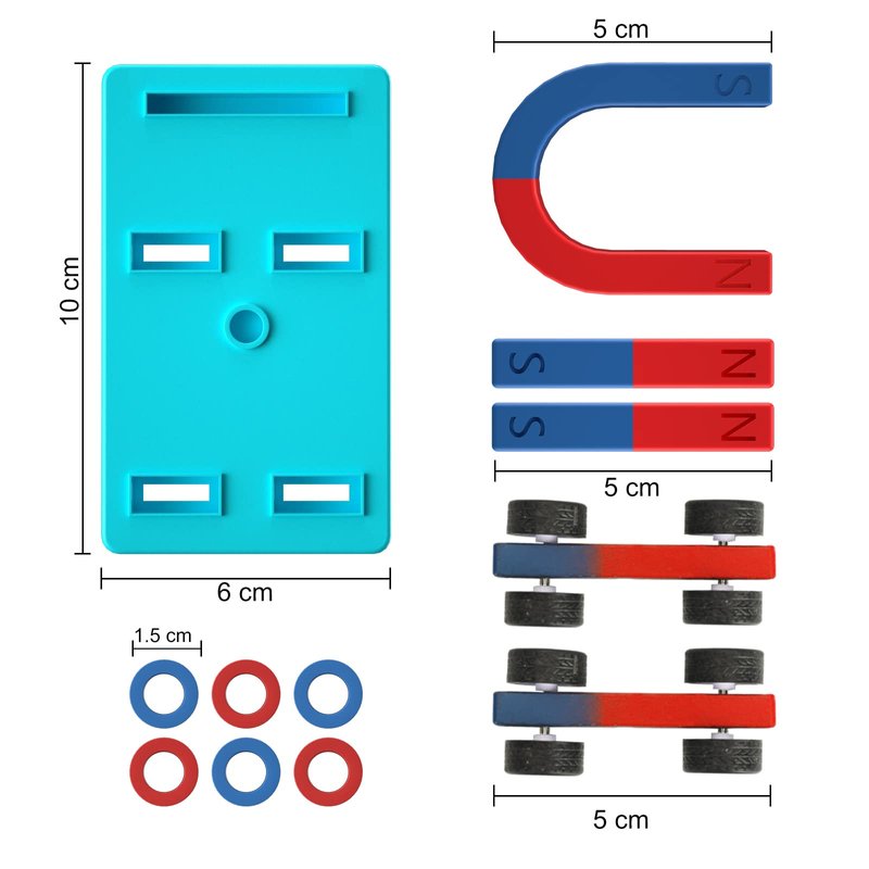 - ✈️【A BIG Complete Bundle】 No need to buy separately and spend more. This bundle includes all popular items you need to make interesting magnetic experiment :1 X U-shaped Magnet(H=3.15in), 1 X U-shaped Magnet(H=1.97in), 1 X Storages jar containing 1 pound iron filings with shaker lid, 2 X Bar Magnet(L=1.97in), 6 X Ring Ceramic magnet(R=0.59in), 2 X Magnetic car, 1 X iron filings box, 1 X Compass, 4 X Rubber ring, 1 X Suspension base, 1 X Plastic rod