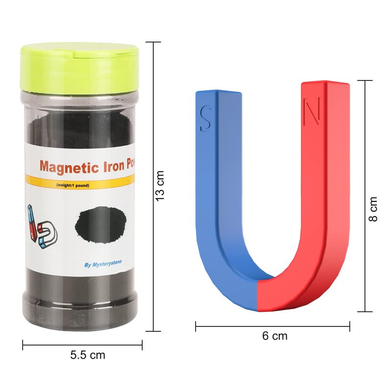 - ✈️【Industrial Grade Magnetic Iron Powder】1 X Storages jar containing 1 pound iron filings, with convenient shaker lid which ensures less mess, clean dry, pure and safe. With this great tool, a magnet(included in the kit) and a sheet of paper, kids get close-up look at magnetic lines and magnetic fields, including poles and attraction. Also, with the iron powder, they can make their coolest magnetic slime, an awesome science and sensory play activity for kids.