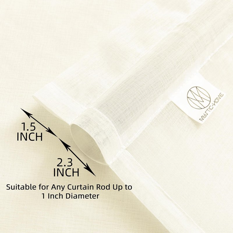 WORRY-FREE SERVICE: 24-Hour Customer Support, 30-Day Money Back GUARANTEED.Product Features:1.Material: Luxurious 100% polyester voile fabric.2.Colors Option: Beige3.Package Includes: Two panels in each package.4.Occasions: Home/ Living room/ Bedroom/Kids room/ Yard/ Patio/ Parlor/ Sliding door/ VillaWhy Choose US?- Mainly made with high-grade voile fabric, classical and refining design.- Our Sheer Curtains are thicker than ordinary sheers, yet still allow sunlight and air to flow through your home. You'll love the way these lightweight, billowy panels look blowing in a gentle breeze.- The Right Balance of Privacy and Light. Keep your spaces bright and cheerful without worrying about visibility from outside. - Transform the look of your interior spaces by putting up our sheer panels.- Durable Curtains! We are known for its durability & quality control.- Simple care. No fuss, just toss into the washing machine, tumble dry on low, and give them a quick iron if needed.Washing Instructions:- Washing with clean water with ordinary temperatures.- DO NOT washing with hot water.- Machine and dryer washable- Tumble Dry on Low- Air dry to wick off any moistureABOUT MYSTIC HOMEwith 20 Years Experience on sheer curtains. We provided the Strongest curtains for world.