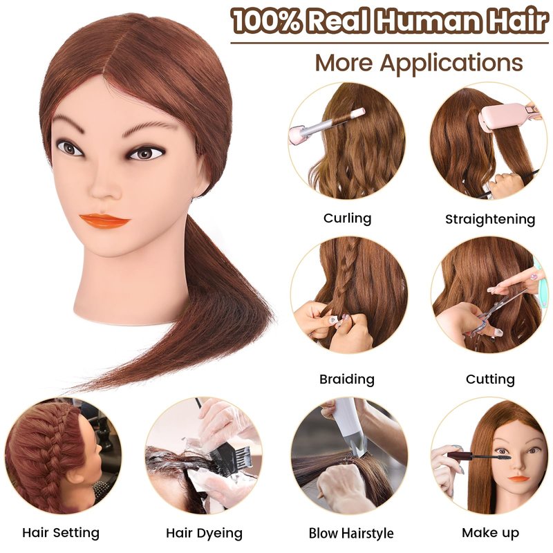 - 💛【Real Human Hair】Made from a blend of 100% real human hair, this mannequin head can be curled, straightened, and braided to your liking. It's the perfect tool for makeup artists, hairdressers, and cosmetology students to practice their skills.
