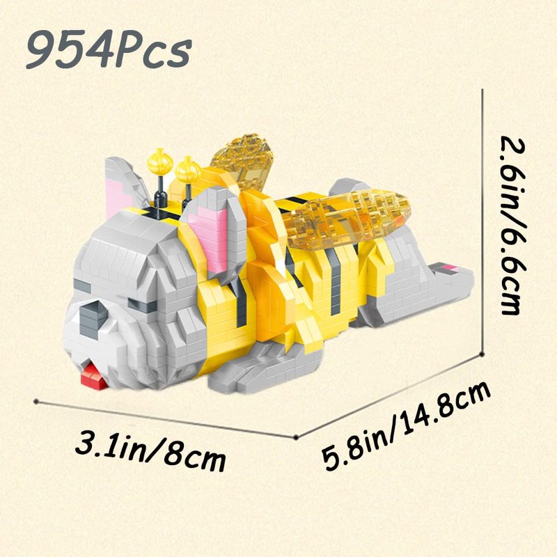 - 【Creative Appearance】-- Micro building blocks dog is a sleeping bulldog lying on its back, but the yellow and black intertwined stripes, together with the transparent wings, doesn't it also look like a giant version of bees? The whole is quite creative and interesting!