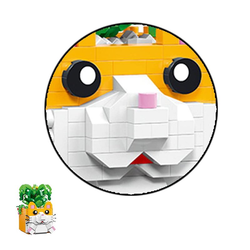 - 【Hamster with Pineapple】-- The hamster blocks creatively combines animals and plants. The hamster's eyes are round, and its hands and feet are placed near its stomach; the yellow fruit in the center of the green plant is a small pineapple!