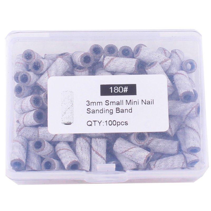 - QTY: 100pcs 180 grit sanding bands with box , Size: Φ3mm x 12.7mm.